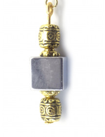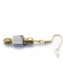 Ces boucles d’oreilles combinent la force minérale de l’hématite naturelle à l’élégance du métal doré travaillé. Les perles ciselées à motifs ethniques apportent une touche raffinée et authentique, soulignant l’éclat gris profond du cube d’hématite. Montées sur des crochets en acier inoxydable plaqué or 18K, elles offrent un rendu lumineux et équilibré, parfait pour sublimer vos tenues du quotidien comme vos looks plus habillés. Chaque bijou est soigneusement confectionné à la main dans notre atelier artisanal en Anjou.