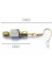Ces boucles d’oreilles combinent la force minérale de l’hématite naturelle à l’élégance du métal doré travaillé. Les perles ciselées à motifs ethniques apportent une touche raffinée et authentique, soulignant l’éclat gris profond du cube d’hématite. Montées sur des crochets en acier inoxydable plaqué or 18K, elles offrent un rendu lumineux et équilibré, parfait pour sublimer vos tenues du quotidien comme vos looks plus habillés. Chaque bijou est soigneusement confectionné à la main dans notre atelier artisanal en Anjou. Longueur totale : 45 mm. Composition : cube d’hématite naturelle du Brésil, perles ciselées en laiton doré et crochets en acier inoxydable plaqué or 18K. Finition brillante et durable. Fabrication artisanale française, réalisée dans notre atelier en Anjou.