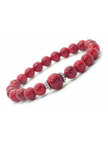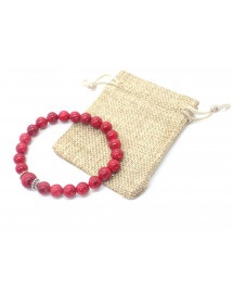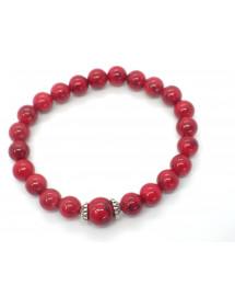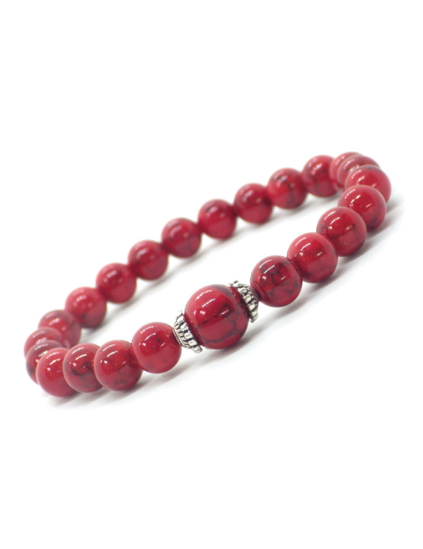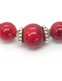 Bracelet pour femme en perles de turquoise reconstituée teintées en rouge et perles tibétaines