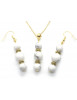 Superbe création artisanale présentée par ThurColas Création, il s'agit d'un ensemble de bijoux composé de boucles d'oreille et d'un collier en acier inoxydable plaqué or avec pendentifs constitués de perles naturelles en Howlite blanche (pierre semi précieuse) agrémenté de perles tibétaines et coupelles en laiton doré. Parfaitement équilibrées avec une hauteur totale de 50 mm et un pendentif de 35 mm, ces boucles d’oreilles légères et confortables sont pensées pour être à la fois élégantes et faciles à porter. Chaque collier est composé d'une chaîne de 45 cm et d'un fermoir mousqueton en acier inoxydable plaqué or, assorti d'un pendentif de 35 mm composé d'une tige et de perles en laiton doré ainsi que de deux perles de 10 et 8 mm. Style : Classique, chic, Ethnique, Bohême Hauteur pendentif : 35 mm Longueur collier : 45 cm Hauteur Boucles d'oreille : 50 mm Crochets : French Perles : 10 mm et 8mm Matériaux : Howlite blanche (pierre semi précieuse), laiton doré, acier inoxydable plaqué or Couleur : blanc Couleur du métal : or,doré