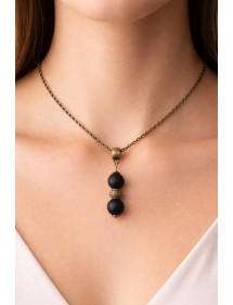 18,18 $Découvrez l’élégance mystérieuse d’une création artisanale signée ThurColas Création. Offrez-vous un bijou d’exception avec ce superbe collier, entièrement réalisé à la main avec soin et passion. Chaque pièce est une véritable œuvre d’art, alliant authenticité, profondeur et raffinement. Ce collier met à l’honneur des perles d’agate noire naturelle, une pierre semi-précieuse prisée pour son noir profond et sa puissance protectrice. L’agate noire est reconnue pour apporter stabilité, ancrage et élégance discrète, conférant à ce bijou une aura de mystère et de force tranquille. Les perles tibétaines finement ouvragées viennent sublimer la pierre, tandis que les coupelles et le fermoir en laiton bronze antique apportent une touche vintage chaleureuse et raffinée. Le laiton, robuste et léger, assure un confort optimal et une tenue durable. Ce collier est bien plus qu’un simple accessoire : il incarne un savoir-faire artisanal exceptionnel et une esthétique profondément symbolique. Que ce soit pour vous faire plaisir ou pour offrir un cadeau chargé de sens, il séduira les amateurs de bijoux authentiques et intemporels. Laissez-vous envelopper par cette création unique, et affirmez votre style avec élégance et assurance grâce à ThurColas Création. Style : Classique, chic, Ethnique, Bohême Hauteur pendentif : 35 mm Longueur collier : 45 cm Perles : 10 mm Matériaux : Agate noire (pierre semi précieuse), laiton, bronze antique Couleur : noir Couleur du métal : Bronze antique -