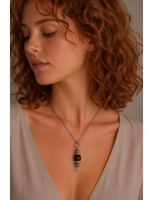 15,17 €Très beau collier de fabrication artisanale présenté par ThurColas Création. Très élégant, ce collier est constitué de perles d'agate givrée noire (pierre semi précieuse) et de perles en métal argenté. Le pendentif est monté sur une chaîne en acier inoxydable. Style : Classique chic, Ethnique, Bohême Longeur : 55cm Hauteur pendentif : 35 mm Perles : 10 mm, 8 mm Matériaux : agate givrée noire (pierre semi précieuse), métal argenté et acier inoxydable Couleur : noir Couleur du métal : Argent antique -