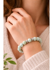 Bracelet pour femme en perles de jade reconstitué vert et noir et perles centrales avec cristaux