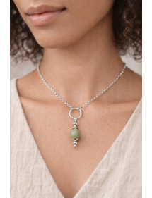 Fabriqué avec passion dans nos ateliers en France, ce magnifique collier ras du cou ThurColas est composé d'un anneau en acier inoxydable et d'une superbe perle de 10 mm en jade vert naturel de Taiwan (pierre semi précieuse). L'ensemble des pièces métalliques de ce collier est en acier inoxydable. - Style : Bohème, Ethnique, Classique Chic - Fermoir : pince de homard - Longueur : 43 cm - Perles : 10 mm - Matériaux : jade vert de Taiwan (pierre semi précieuse), acier inoxydable - Couleur : vert - Couleur du métal : Argent Antique, acier Ce bijou est réalisé avec des perles de jade vert naturel de Taiwan. Le tout est monté sur une chaîne et un anneau en acier inoxydable. Ce bijou est livré avec une superbe pochette cadeau en textile doré.