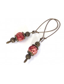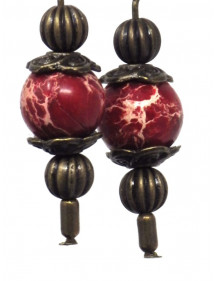 Boucles d'oreilles Thurcolas de style vintage en jaspe impérial rouge montées sur créoles fantaisie en bronze antique
