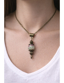 Very beautiful handcrafted necklace presented by ThurColas Création. Very elegant, this necklace is made of red Picasso jasper beads (semi-precious stone) and Tibetan beads in gilded metal. Everything is mounted on a stainless steel chain. Style: Classic chic, Ethnic, Bohemian Clasp: lobster claw Length: 55 cm Beads: 10 mm, 8 mm Materials: red Picasso jasper (semi-precious stone), metal and golden stainless steel Color: brown, Red Metal color: Gold