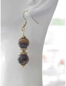 Earrings with brown Tiger's eye beads and golden Tibetan beads