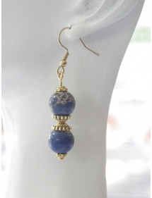 Blue imperial jasper bead and gold Tibetan bead earrings