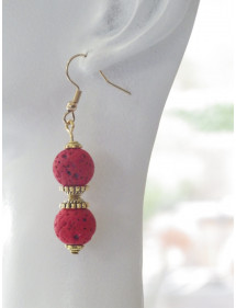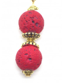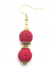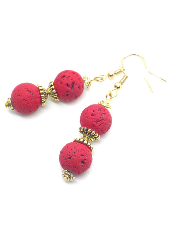 Magnificent artisanal creation presented by ThurColas Creation, these are earrings made of natural red lava stone beads (semi-precious stone) embellished with Tibetan beads and gold metal cups. Everything is mounted on gold-plated stainless steel French hooks. Style: Classic, chic, Ethnic, Bohemian Hook: French Height: 50 mm Beads: 10 mm Materials: red lava stone (semi-precious stone), stainless steel, gold metal Color: red Metal color: Gold