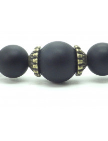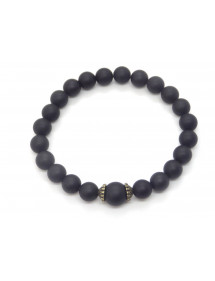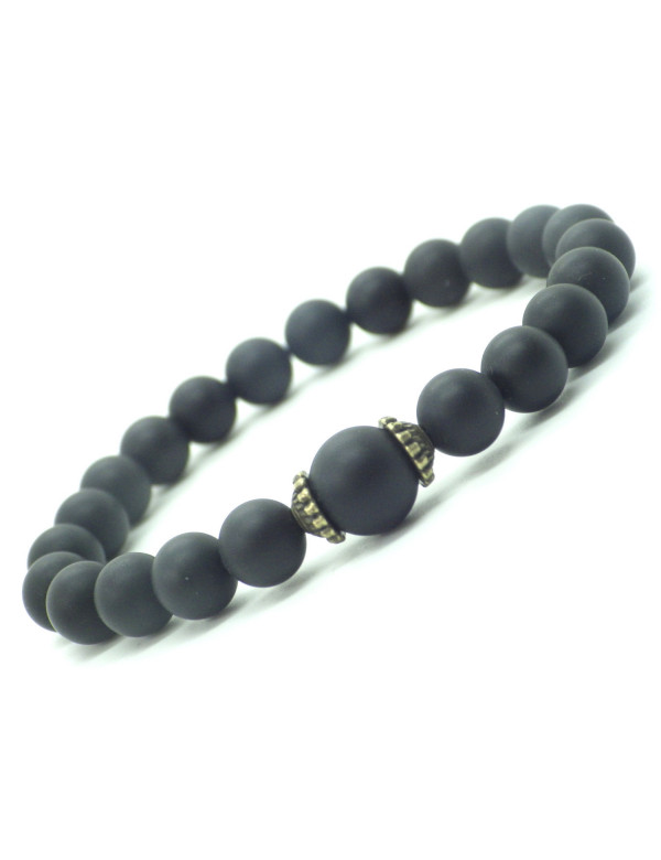 Magnificent artisanal creation presented by ThurColas Creation, this is a women's bracelet made of natural black Agate pearls (semi-precious stone) decorated with antique bronze-colored brass cups. Everything is mounted on a quality elastic thread. Style: Classic, chic, Ethnic, Bohemian Length: 19 cm Beads: 10 mm Materials: Black agate (semi-precious stone), brass Color: black Metal color: Antique bronze
