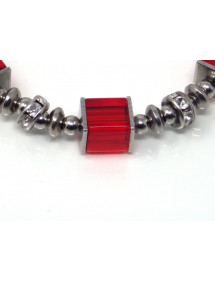 Beautiful red classic style bracelet for elegant woman. This precious jewel is made with red glass square beads, all the metal parts are made of stainless steel, the whole is mounted on a rigid and very solid stainless steel wire. The dominant color of the bracelet is red. This jewel is embellished with beautiful steel and rhinestone beads, the glass beads are 6 and 8 mm. The bracelet measures 60 mm in diameter and has a stainless steel chain to adjust to a larger wrist. Thurcolas is a French creative workshop specializing in the artisanal manufacture of jewelry. All our jewelry, bracelets, earrings, necklaces and anklets are handmade in France with quality materials.