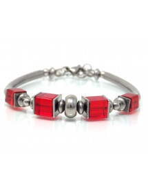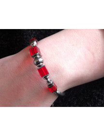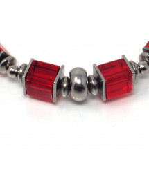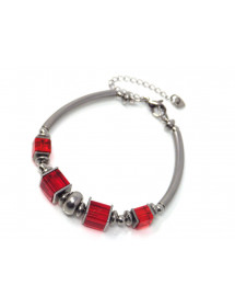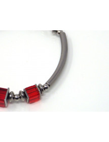 Beautiful red classic style bracelet for elegant woman. This precious jewel is made with red glass square beads, all the metal parts are made of stainless steel, the whole is mounted on a rigid and very solid stainless steel wire. The dominant color of the bracelet is red. This jewel is embellished with beautiful steel tube beads, the glass beads are 6 and 8 mm. The bracelet measures 60 mm in diameter and has a stainless steel chain to adjust to a larger wrist. Thurcolas is a French creative workshop specializing in the artisanal manufacture of jewelry. All our jewelry, bracelets, earrings, necklaces and anklets are handmade in France with quality materials.