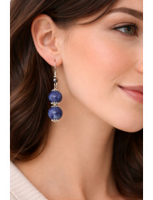 Magnificent artisanal creation presented by ThurColas Creation, these are earrings made of natural blue jasper beads (semi-precious stone) embellished with Tibetan beads and silver metal cups. Everything is mounted on French hooks. Style: Classic, chic, Ethnic, Bohemian Hook: French Height: 50 mm Beads: 10 mm Materials: blue jasper (semi-precious stone), stainless steel, silver metal Color: blue Metal color: Silver, steel