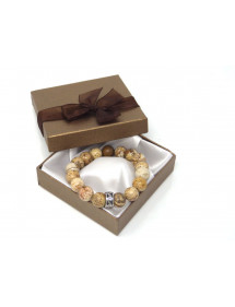 Beautiful brown tribal style bracelet for men made with jasper beads. The dominant color of the bracelet is brown. This bohemian style men's bracelet is embellished with a beautiful central pearl in stainless steel with wave-shaped patterns. The beads are 12 mm in diameter and the bracelet is 21 cm long. Thurcolas is a French creative workshop specializing in the artisanal manufacture of jewelry. All our jewelry, bracelets, earrings, necklaces and anklets are handmade in France with quality materials. This bracelet is made with natural semi precious stones mounted on a quality elastic thread. The materials used are: Jasper: Jasper is found mainly in India, Australia and Venezuela. Jasper was once sought for its virtues on the liver, pancreas and spleen. Stainless Steel: This is a steel alloy with great strength that does not deteriorate or rust. This jewelry comes with a gift box.