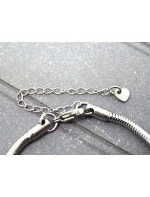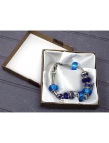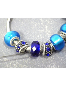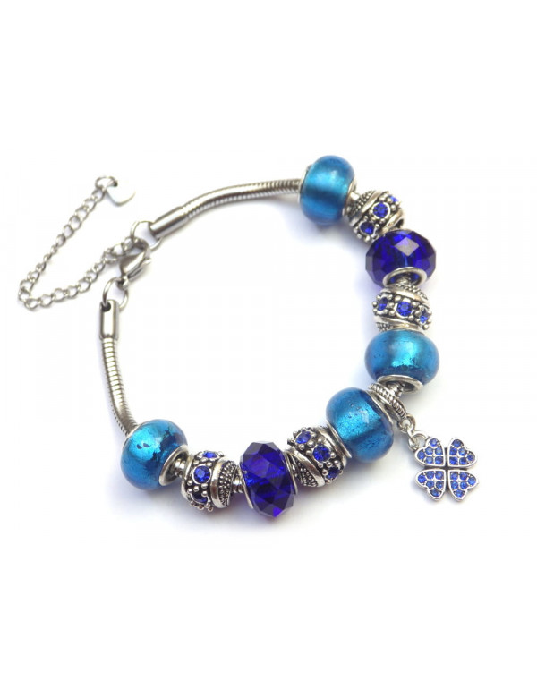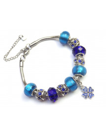 Superb stainless steel bracelet. Made with passion this Charms Manhattan bracelet is made up of silver-plated metal beads with crystals and blue resin beads. The beads on this bracelet are compatible with Charms style bracelets and necklaces. The whole is mounted on a stainless steel snake chain and decorated with a sublime clover-shaped pendant set with crystals. Style: Charms Length: 190 mm Pendant: 25 mm Clasp: lobster claw Beads: 9 to 14 mm with large hole compatible with Charms style bracelets Materials: Stainless steel brass resin crystals Color: Blue Metal color: Antique silver This beautiful bracelet is made of Charms type beads in inlaid resin and a pendant with crystals mounted on a flexible stainless steel snake mesh bracelet. Antique silver is a name for an alloy of metals that does not contain silver. This jewel comes with a free gold-colored gift pouch.
