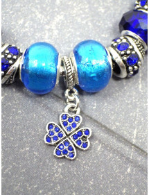 Superb stainless steel bracelet. Made with passion this Charms Manhattan bracelet is made up of silver-plated metal beads with crystals and blue resin beads. The beads on this bracelet are compatible with Charms style bracelets and necklaces. The whole is mounted on a stainless steel snake chain and decorated with a sublime clover-shaped pendant set with crystals. Style: Charms Length: 190 mm Pendant: 25 mm Clasp: lobster claw Beads: 9 to 14 mm with large hole compatible with Charms style bracelets Materials: Stainless steel brass resin crystals Color: Blue Metal color: Antique silver