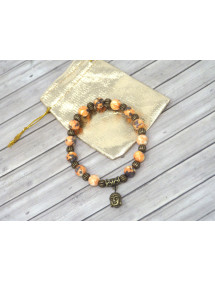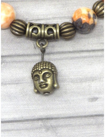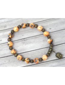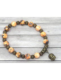 Bracelet for women in jade beads tinted in orange and black with pampille head of Buddha