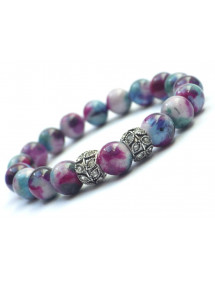 This superb ethnic style women's bracelet was handmade in our workshop in France. Carefully crafted this bracelet is made of reconstituted white jade tinted in orange and black and Tibetan bronze beads. The Buddha head gives a zen and antique look to this jewel it is essential for holidays and the beach. Style: Bohemian Vintage Ethnic tribal Length: 190 mm Beads: 10 mm Materials: Reconstituted white jade tinted bronze Color: Orange black bronze Metal color: Bronze Our pearls are made of reconstituted white Jade tinted in orange and black and assembled on a quality elastic thread. The stone dyeing process being random there may be slight differences with the model presented each model is therefore unique. This jewel comes with a free gold-colored gift pouch.