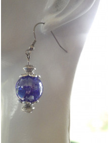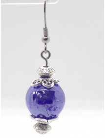 These elegant handmade earrings will add a touch of sophistication to your outfit. Their vintage style, enhanced by a brown lampwork glass bead surrounding a silver leaf, makes them ideal for a special occasion or to add a chic note to your daily wear. Each earring features brass hooks, matched with antique bronze brass beads and rods for a harmonious and timeless design. Perfectly balanced with a total height of 50 mm and a pendant of 35 mm, these lightweight and comfortable earrings are designed to be both elegant and easy to wear. This jewelry is the result of French craftsmanship. Entirely handmade in my workshop, it reflects attention to detail and a passion for creating unique and elegant pieces. A true mark of quality and authenticity. Total height: 50 mm Pendant height: 35 mm Bead: 14 mm glazed and pearlescent glass with silver leaf Hooks: Stainless steel Metal rods and beads: Silver-plated brass French artisan manufacturing