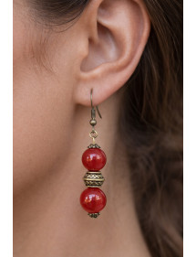 These elegant handmade earrings will add a touch of sophistication to your outfit. Their vintage style, enhanced by a green glazed and pearly glass bead surrounding a silver leaf, makes them ideal for a special occasion or to add a chic note to your daily wear. Each earring features stainless steel hooks, matched with silver-plated brass beads and rods for a harmonious and timeless design. Perfectly balanced with a total height of 50 mm and a pendant of 35 mm, these lightweight and comfortable earrings are designed to be both elegant and easy to wear. This jewelry is the result of French artisanal craftsmanship. Entirely handmade in my workshop, it reflects the attention to detail and the passion for creating unique and elegant pieces. A true guarantee of quality and authenticity. Total height: 50 mm Pendant height: 35 mm Bead: Glossy and pearly glass of 14 mm with silver leaf Hooks: Stainless steel Stems and metal beads: Silver-plated brass Made in France