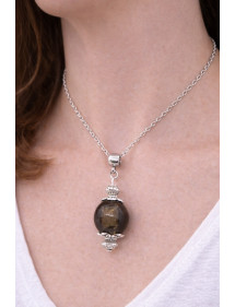 This elegant handmade necklace will add a touch of sophistication to your outfit. Its vintage style, enhanced by a brown lampwork glass bead surrounding a silver leaf, makes it ideal for a special occasion or to add a chic note to your daily wear. This necklace and its clasp are made of stainless steel, matched with silver-plated brass beads and rods, for a harmonious and timeless design. Perfectly balanced with a 45 cm chain and a 35 mm pendant, this lightweight and comfortable piece is designed to be both elegant and easy to wear. This piece of jewelry is the result of French artisanal craftsmanship. Entirely handmade in my workshop, it reflects the attention to detail and passion for creating unique and elegant pieces. A true guarantee of quality and authenticity. Chain length: 45 cm Pendant height: 35 mm Bead: 18 mm lampwork glass with silver leaf Hooks: Stainless steel Rods and metallic beads: Silver-plated brass French artisanal craftsmanship