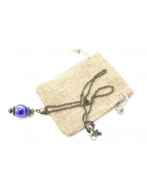 This elegant handcrafted necklace will add a touch of refinement to your outfit. Its vintage style, enhanced by a glossy and pearlescent blue glass bead surrounding a silver leaf, makes it ideal for a special occasion or to add a chic touch to your daily wear. This necklace and its clasp are made of brass, paired with antique bronze brass beads and rods, for a harmonious and timeless design. Perfectly balanced with a 45 cm chain and a 35 mm pendant, these lightweight and comfortable earrings are designed to be both elegant and easy to wear.