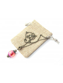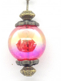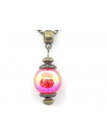 This elegant handcrafted necklace will add a touch of refinement to your outfit. Its vintage style, enhanced by an iridescent orange-red acrylic bead, makes it ideal for a special occasion or to add a chic touch to your everyday wear. This necklace and its clasp are made of brass, paired with antique bronze brass beads and rods for a harmonious and timeless design. Perfectly balanced with a 45 cm chain and a 35 mm pendant, these lightweight and comfortable earrings are designed to be both elegant and easy to wear. This piece of jewelry is the result of French artisanal craftsmanship. Entirely handmade in my workshop, it reflects attention to detail and a passion for creating unique and elegant pieces. A true guarantee of quality and authenticity. Chain length: 45 cm Pendant height: 35 mm Bead: 15 mm iridescent acrylic Hooks: Brass Metal rods and beads: Antique bronze brass French artisanal craftsmanship.