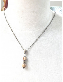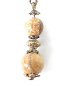 Style: Classic, chic, Ethnic, Bohemian Pendant height: 35 mm Necklace length: 45 cm Beads: 10 mm and 8 mm Materials: brown jasper (semi precious stone), brass, antique bronze Color: brown Metal color: Antique bronze Our beads used for the pendant of this necklace are made of real brown jasper and assembled on a brass post the whole is mounted on an antique bronze colored brass chain, jasper being a natural stone, each bead is unique in color so there may be slight differences with the model presented, Each model is therefore unique. This piece of jewelry comes with a free gift bag.