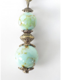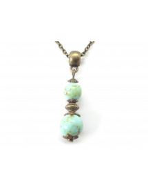 Women's necklace with pendant in blue-tinted reconstituted turquoise beads and antique bronze Tibetan beads