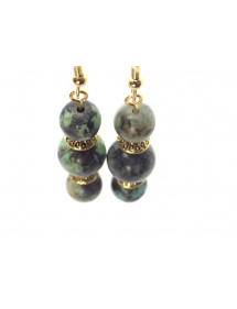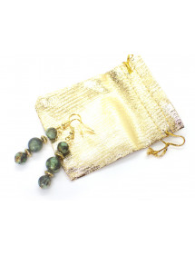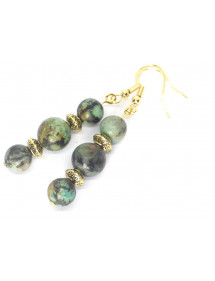 Very beautiful handcrafted earrings presented by ThurColas Création. Very elegant, these earrings are made of green natural turquoise beads (semi-precious stone) and Tibetan beads in gold metal. Everything is mounted on stainless steel hooks. Style: Classic chic, Ethnic, Bohemian Hook: French Height: 55 mm Beads: 10 mm, 8 mm Materials: green natural turquoise (semi-precious stone), metal and golden stainless steel Color: Green Metal color: Gold