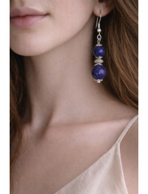 Very beautiful handcrafted creation presented by ThurColas Creation, these are stainless steel earrings made of natural blue Lapis Lazuli beads (semi-precious stone) embellished with Tibetan beads and silver-plated brass beads. The whole thing is mounted on stainless steel French hooks. Perfectly balanced with a total height of 50mm and a 35mm pendant, these lightweight and comfortable earrings are designed to be both stylish and easy to wear. Style: Classic, Chic, Ethnic, Bohemian Crochet: French Height: 50 mm Beads: 10 mm and 8 mm Materials: Blue Lapis Lazuli (semi-precious stone), brass, stainless steel Color: blue Metal color: steel, silver Our beads are made of real blue Lapis Lazuli and assembled on a silver brass shank and stainless steel hooks, Lapis Lazuli being a natural stone, each bead is unique in color so there may be slight differences with the model presented, each model is therefore unique. This piece of jewelry comes with a free gift bag. These earrings are the result of French craftsmanship. Entirely handmade in my workshop, it reflects the attention to detail and passion for creating unique and elegant pieces. A true guarantee of quality and authenticity. Total height of the earrings: 50 mm Pendant height: 35 mm Bead: 10 and 8 mm