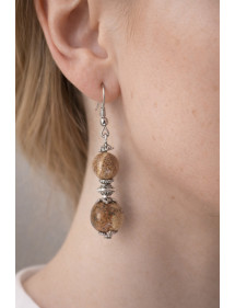 Style: Classic, Chic, Ethnic, Bohemian Hook: French Height: 50 mm Beads: 10 mm and 8 mm Materials: Brown Jasper (Semi Precious Stone), Brass, Stainless Steel Color: Brown Metal Color: Steel, Silver