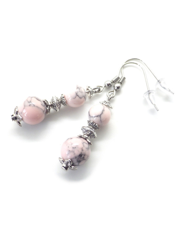 A beautiful handcrafted creation presented by ThurColas Création, these are stainless steel earrings made of turquoise beads reconstituted with resin and dyed pink, embellished with Tibetan beads and silver-plated brass beads. The whole thing is mounted on stainless steel French hooks. Perfectly balanced with a total height of 50mm and a 35mm pendant, these lightweight and comfortable earrings are designed to be both stylish and easy to wear. Style: Classic, chic, Ethnic, Bohemian Crochet: French Height: 50 mm Beads: 10 mm and 8 mm Materials: Pink relocated turquoise, brass, stainless steel Color: pink Metal color: steel, silver