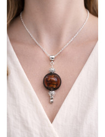 Its vintage style, enhanced by beautiful pearls, makes it ideal for a special occasion or to bring a chic note to your everyday outfit. This necklace and clasp are made of stainless steel, matched with silver brass beads and posts, for a harmonious and timeless design. Perfectly balanced with a 45 cm chain and a 35 mm pendant.
