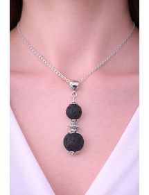 Style: Classic, chic, Ethnic, Bohemian Pendant height: 35 mm Necklace length: 45 cm Beads: 10 mm and 8 mm Materials: black lava stone (semi precious stone), brass, stainless steel Color: black Metal color: steel, silver Our beads used for the pendant of this necklace are made of real black lava stone and assembled on a silver brass rod the whole is mounted on a stainless steel chain, lava stone being a natural stone, each bead is unique in color so there may be slight differences with the model presented, Each model is therefore unique. This piece of jewelry comes with a free gift bag.