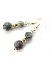 Style: Classic, chic, Ethnic, Bohemian Crochet: French Height: 50 mm Beads: 10 mm and 8 mm Materials: Green turquoise (semi precious stone), brass, stainless steel Color: green Metal color: gold, gold Our beads are made of real green Turquoise and assembled on a golden brass shank and gold-plated stainless steel hooks, turquoise being a natural stone, each bead is unique in color so there may be slight differences with the model presented, each model is therefore unique. This piece of jewelry comes with a free gift bag.