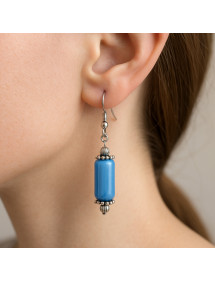 €11.83These blue porcelain earrings combine the softness of handmade ceramics with the silvery sheen of metal. Their sleek design showcases a 30 mm cylindrical glazed porcelain bead, a soothing and luminous blue, symbolizing balance and renewal. The fine and durable porcelain gives this piece a delicate and timeless character. The silver-plated brass findings and beads subtly highlight the brilliance of the ceramic, while the stainless steel hooks and posts ensure comfort and durability. Each pair is meticulously handcrafted in our workshop in Anjou, respecting French artisanal expertise. These earrings pair perfectly with a natural, bohemian, or chic outfit, adding a touch of freshness and lightness. Delivered in a natural pouch, ready to give as a gift or to treat yourself.