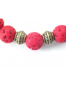 Very beautiful women's bracelet made with care in our workshops in France. This bracelet is made of beautiful natural red lava stone beads and very pretty Tibetan beads in antique bronze brass. It is the strength of the metal that shines through in this model. Style: Ethnic, Bohemian, Tribal, Zen Length: 190 mm Beads: 10 mm Materials: Lava Stone (Semi-Precious Stone), Brass Color: Red, Metal Color: Antique Bronze