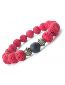 Very beautiful women's bracelet made with care in our workshops in France. This bracelet is made of beautiful natural red lava stone beads, black agate beads and very pretty Tibetan beads in antique bronze brass. It is the strength of the metal that shines through in this model. Style: Ethnic, Bohemian, Tribal, Zen Length: 190 mm Beads: 10 mm Materials: Lava Stone (Semi-Precious Stone), Black Agate Brass Color: Red, Black Metal Color: Antique Bronze Superb bracelet composed of natural red lava stone beads (semi-precious stone), black agate and Tibetan brass beads, all mounted on a quality elastic thread. This piece of jewelry comes with a free gold-colored gift bag.