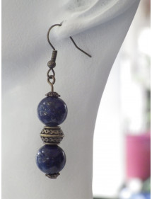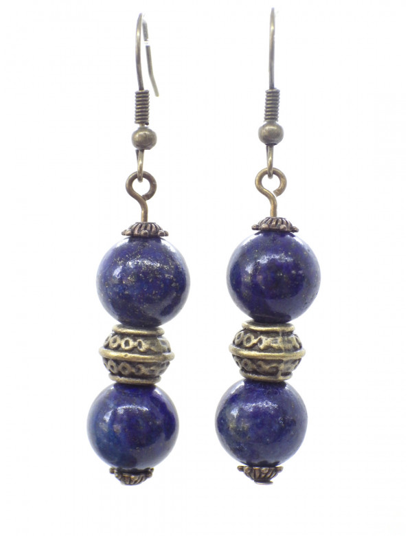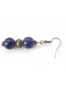Let yourself be enchanted by the mystical elegance of an artisanal creation by ThurColas Création. Discover unique earrings, crafted with passion and meticulousness, that combine the richness of natural materials with the elegance of an inspired design. At the heart of this creation: sublime Lapis Lazuli beads, a deep blue semi-precious stone sprinkled with golden sparkles. A symbol of wisdom, truth and intuition since ancient times, Lapis Lazuli seduces with its enigmatic beauty and strong spiritual dimension. Each pearl is carefully selected to reveal the full intensity and depth of this exceptional stone. To complete this harmony of materials, finely chiseled Tibetan beads and brass cups with an antique bronze finish enrich the composition, giving it a touch of authenticity and a refined ethnic charm. The set is mounted on brass French hooks, ensuring comfort, lightness and long-lasting support. This choice of noble and timeless materials guarantees a piece of jewelry that is as pleasant to wear as it is to admire. With ThurColas Création, choose the authenticity, beauty and symbolic force of a handmade piece of jewellery, designed to sublimate you with elegance. Style: Classic, Chic, Ethnic, Bohemian Crochet: French Height: 50 mm Beads: 10 mm Materials: Blue Lapis Lazuli (semi precious stone), brass, antique bronze Color: blue Metal color: bronze Bring a touch of celestial elegance to your style with this pair of handcrafted earrings in real Lapis Lazuli, signed ThurColas Creation. This jewel is entirely handmade in our workshop located in Anjou, by a passionate craftsman, concerned with authenticity and detail. Each pair reflects local know-how, combining natural stones and meticulous finishes. The beads used are made of genuine Lapis Lazuli, a deep blue gemstone sprinkled with golden pyrite, from Afghanistan, a region renowned for the exceptional quality of its lapis since ancient times. A symbol of wisdom, truth and intuition, this stone has been appreciated for thousands of years for its intense beauty and spiritual radiance. The beads are mounted on a brass rod and antique bronze brass hooks, chosen for their lightness, strength and elegance. The brass warms the golden reflections of Lapis Lazuli while ensuring optimal comfort on a daily basis. As each stone is natural, slight variations in shade and pattern may appear, making each creation truly unique. Your jewelry will be delivered to you in a free gift bag, ready to offer or to keep preciously.