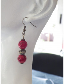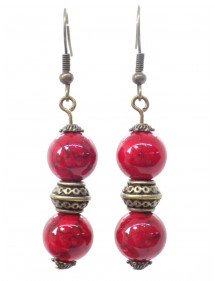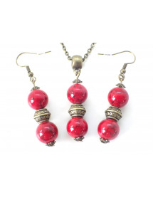 Discover the authentic elegance of this handcrafted jewelry set by ThurColas Création. This refined set includes a necklace and a pair of bronze earrings, enhanced by real red-tinted reconstituted turquoise beads, a stone made from natural fragments bound together by resin, offering a warm and vibrant hue symbolizing passion and vitality. The earrings, with an ideal height of 50 mm, offer lightness and comfort for a comfortable wear all day long. Their harmonious design combines reconstituted turquoise beads, Tibetan beads and bronze beads, for a look that is at once chic, ethnic and bohemian. The necklace, with its 45 cm antique bronze brass chain, is embellished with a 35 mm pendant made of red-tinted reconstituted turquoise beads and ornate bronze elements. Its lobster clasp ensures a secure and practical closure. Perfect for enhancing all your outfits, this set is a must-have for those looking for a style that is both classic and trendy, with a touch of authenticity. Key Features: Style: Classic, Chic, Ethnic, Bohemian. Pendant height: 35 mm. Necklace length: 45 cm. Height of the earrings: 50 mm. Hooks: French hook. Bead size: 10 mm. Materials: Red-tinted constituted turquoise (semi-precious stone), antique bronze. Color: Red for pearls, bronze for metal. Treat yourself to a unique handcrafted jewel, combining natural beauty and traditional know-how, to shine with elegance on a daily basis.