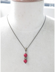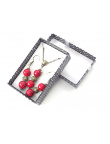Discover the authentic elegance of this handcrafted jewelry set by ThurColas Création. This refined set includes a necklace and a pair of bronze earrings, enhanced by real red-tinted reconstituted turquoise beads, a stone made from natural fragments bound together by resin, offering a warm and vibrant hue symbolizing passion and vitality. The earrings, with an ideal height of 50 mm, offer lightness and comfort for a comfortable wear all day long. Their harmonious design combines reconstituted turquoise beads, Tibetan beads and bronze beads, for a look that is at once chic, ethnic and bohemian. The necklace, with its 45 cm antique bronze brass chain, is embellished with a 35 mm pendant made of red-tinted reconstituted turquoise beads and ornate bronze elements. Its lobster clasp ensures a secure and practical closure. Perfect for enhancing all your outfits, this set is a must-have for those looking for a style that is both classic and trendy, with a touch of authenticity. Key Features: Style: Classic, Chic, Ethnic, Bohemian. Pendant height: 35 mm. Necklace length: 45 cm. Height of the earrings: 50 mm. Hooks: French hook. Bead size: 10 mm. Materials: Red-tinted constituted turquoise (semi-precious stone), antique bronze. Color: Red for pearls, bronze for metal. Treat yourself to a unique handcrafted jewel, combining natural beauty and traditional know-how, to shine with elegance on a daily basis. Make a style statement with the bold, timeless sparkle of red-tinted reconstituted turquoise with this handcrafted jewelry set from ThurColas Creation. This set, composed of a necklace and a pair of earrings, is entirely handmade in our workshop in Anjou, by a passionate craftsman who carefully selects each material to create unique, durable and meaningful pieces. offering a bright and warm color, a symbol of passion and vitality. The pearls are mounted on a brass shank and a chain made of antique bronze brass, a light and robust metal, whose warm reflections enhance the glowing richness of the stones. As each pearl is made, slight variations in hue may appear, making each necklace and pair of earrings truly unique. This set comes with a free gift bag, perfect for treating yourself or offering an elegant and meaningful present.