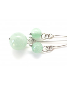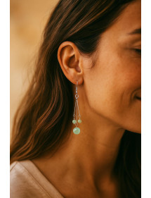 Enhance your look with these elegant dangling earrings in natural green aventurine, handcrafted in our French workshop in Anjou. Each pair, meticulously made by hand, reflects our passion for refined jewelry inspired by nature and traditional craftsmanship. The three suspended beads—two of 6 mm and one larger of 10 mm—create a graceful, captivating movement with every gesture. Their soothing green hue evokes freshness and harmony. The fine silver‑plated brass rods highlight the stone’s beauty and give the set an airy, delicate silhouette. The stainless steel hooks ensure comfortable wear, even for sensitive ears. The earrings measure 75 mm in total height, with a 55 mm pendant drop, offering an elegant fall that subtly elongates the neckline. Perfect for everyday wear or special occasions, they come in a natural fabric pouch, ready to gift. Aventurine is a semi‑precious stone appreciated for its gentle sparkle and soft green tone—an invitation to calm and balance. Treat yourself to a unique piece full of poetry and character.