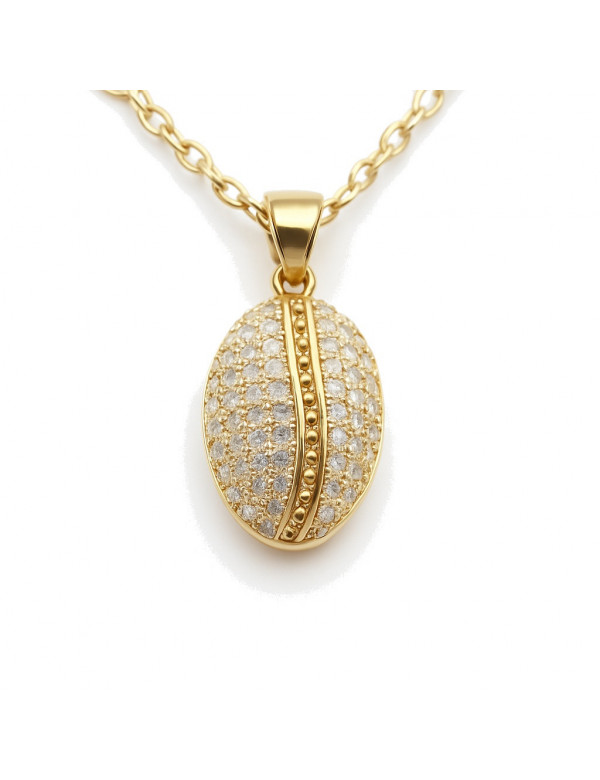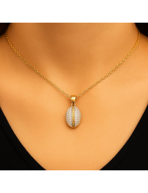 Elegant and luminous, this necklace showcases an 18.5 mm by 10 mm oval pendant, fully paved with sparkling zircons separated by a delicately beaded central bangle. The 45 cm gold-plated stainless steel chain, completed with a 5 cm extension, allows for a comfortable and versatile fit. Handcrafted in our workshop in Anjou, this jewel brings a touch of refinement to your outfits, from everyday to special occasions. Gold-plated stainless steel necklace. Chain length: 45 cm + 5 cm extension. Oval pendant 18.5 mm x 10 mm, zirconia pavement, central beaded bangle. Lobster clasp. French artisanal manufacture, made in our workshop in Anjou.