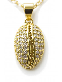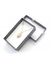 Elegant and luminous, this necklace showcases an 18.5 mm by 10 mm oval pendant, fully paved with sparkling zircons separated by a delicately beaded central bangle. The 45 cm gold-plated stainless steel chain, completed with a 5 cm extension, allows for a comfortable and versatile fit. Handcrafted in our workshop in Anjou, this jewel brings a touch of refinement to your outfits, from everyday to special occasions.