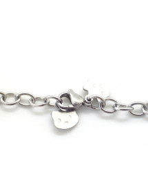 This stainless steel bracelet features three cat head pendants. Lightweight, durable, and comfortable, it adds a subtle and trendy feline touch to your wrist. Designed and handcrafted in our workshop in Anjou, it makes an ideal gift for cat and kitten lovers. Silver-finished stainless steel bracelet. Length: 21 cm. Pendants: three openwork cat heads. Lobster clasp. French craftsmanship made in our workshop in Anjou.