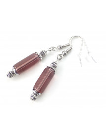 Brown glass and silver-plated brass earrings – Stainless steel hooks – Handmade
