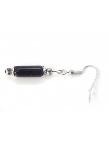 Materials: Black glass pendant, silver-plated brass metal beads, stainless steel hooks and post.