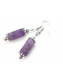 These natural amethyst earrings captivate with their deep purple radiance and timeless elegance. A stone of wisdom and serenity, amethyst is known to soothe the mind, promote mental clarity, and aid meditation. Its color, a symbol of calm and balance, pairs well with both understated and sophisticated outfits. Each 30 mm cylindrical pendant is cut from a natural amethyst carefully selected for its harmonious hue and transparency. The delicately crafted silver-plated brass beads and findings highlight the stone's nobility. The stainless steel hooks and posts ensure comfort, strength, and skin tolerance. These earrings, handcrafted in our workshop in Anjou, embody the combination of elegance, positive energy, and French expertise. They come in a natural pouch, ready to give as a gift or to treat yourself.