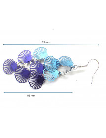 Inspired by the beauty of the seabed, these original earrings play with light through a subtle gradient of turquoise blue and purple. Each stylized shell is delicately cut from stainless steel, a material renowned for its strength and resistance to oxidation. The ensemble forms an airy, light, and fluid piece of jewelry, delicately swaying with every movement. The glossy finish reflects the nuances of the metal and accentuates the brilliance of the gradient. These earrings, 75 mm long with a 55 mm pendant, add a chic marine touch to any outfit, whether summery or dressy. Carefully crafted in our workshop in Anjou, they embody French artisanal know-how and attention to detail. A piece of jewelry that is both modern and poetic, perfect for illuminating the face while evoking the gentleness of the shores.